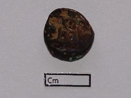 | Description / विवरण | A small copper coin with a human-like figure sitting in a yogic posture on reverse. On the obverse there is a symbol like Devanagari Pa प It is badly corroded or it never had any legends on it |