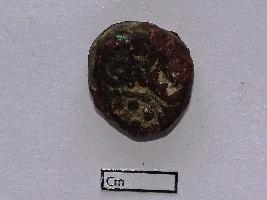 | Description / विवरण | A copper coin. It is largely corroded. It has a pattern of 9 dots on one side. The other side had legends, which are now illegible. |