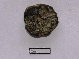 | Description / विवरण | A small copper coin with a wrongly punched mark on one side. The other side is uneven. It is badly corroded. This coin must be a debitage from coin mint, as the shape and finishing are not complete |