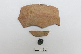 | Description / विवरण | It is a fragment of a copper coin. It is not legible as it is corroded. It was found with a broken sherd of a terracotta bowl. |