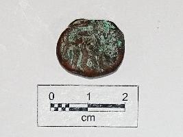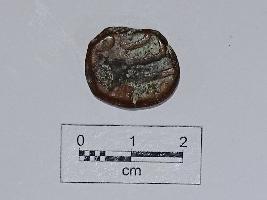 | Description / विवरण | A roughly circular coin, minor corrosion marks. It has legends in Persian script on the obverse and reverse is mostly unclear. |