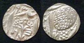 | Description / विवरण | Descrpn./Obv In the centre, a chhatra with Sa and Ta in Gurumukhi script on the left and right of its shaft; traces of the Persian legend seen on the obverse of the bigger Nanakshahi coins of Amritsar mint are also seen. Descrpn./Rev Big peepal leaf and traces of the Persian legend seen on the reverse of the bigger Nanakshahi coins of Amiritsar mint - Shri Amritsarjiv zarb [VS Year] Takht maimanat julus manus Akal Bakht. Especially traces of alif of Akal and te of Takht and maimanat are seen |