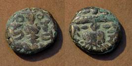 | Description / विवरण | Descrpn./Obv Stylised seated Goddess facing; Sharada legend, Ha (on l.) rsha ra (on r.). Descrpn./Rev Stylised standing king design; Sharada legend, jadeva (on r.) |