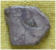 | Description / विवरण | The shape of the coin is pentagonal. Obverse Six armed chakra and other symbols are indistinct. Reverse Symbols are indistinct. |