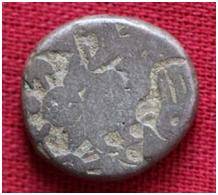 | Description / विवरण | It is an imperial type of punch marked coin. The coin is oval in shape. Obverse Sun, a six armed wheel, elephant and other symbols are indistinct. Reverse Symbol is indistinct. |