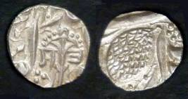 | Description / विवरण | Descrpn./Obv In the centre, a chhatra with Sa and Ta in Gurumukhi script on the left and right of its shaft; traces of the Persian legend seen on the obverse of the bigger Nanakshahi coins of Amritsar mint are also seen. Descrpn./Rev Big peepal leaf and traces of the Persian legend seen on the reverse of the bigger Nanakshahi coins of Amiritsar mint - Shri Amritsarjiv zarb [VS Year] Takht maimanat julus manus Akal Bakht. Especially traces of alif of Akal and te of Takht and maimanat are seen |