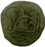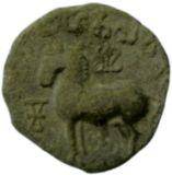 | Description / विवरण | Clear Horse symbol with legend, and Srivatsa mark above the animal. Obverse Horse standing to its right with slightly raised ears, Srivatsa symbol above and triangular standard in front. The legend ma ha ta la va ra. Reverse Three arched hill with 6 dots in two lower arches and 4 dots in the top arch and a wavy line below. All are enclosed by a double line square. |