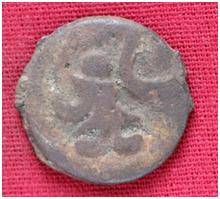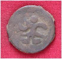 | Description / विवरण | The Shape of the Coin is Circular. Obverse A Standing figure of Kushana type king, with upwards curved right hand and downwards curved left hand, wears boots and tunic. Reverse Probably a standing figure of MAO or Moon-God with upwards curved right hand and left hand is not visible, the crescent above the left shoulder, wears boots tunic. |