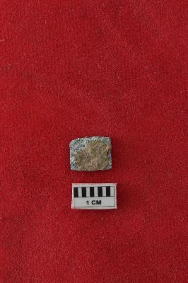 | Description / विवरण | Small rusted rectangular coin with faded legends on it. |