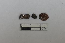 | Description / विवरण | These are three fragments of copper coins. The inscriptions on them are illegible. One of them is roughly circular. Two of them are irregular in shape. The circular one is slightly patinated. |