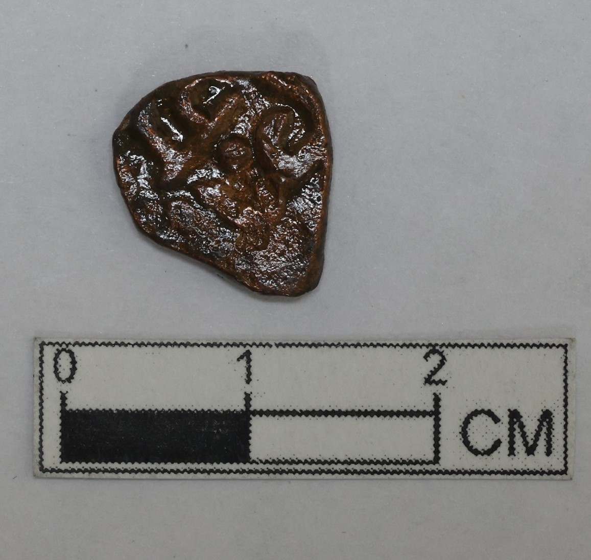 It is a copper coin. It is irregular in shape. There is inscription on both sides. It has rough edges. It belongs to the Tughlaq dynasty.