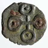 | Description / विवरण | Rectangular shaped Obverse Elephant facing right. Legend around in Brahmi characters siri satakana ni Reverse Ujjain symbol with dot in each orb and a crescent on one orb. |