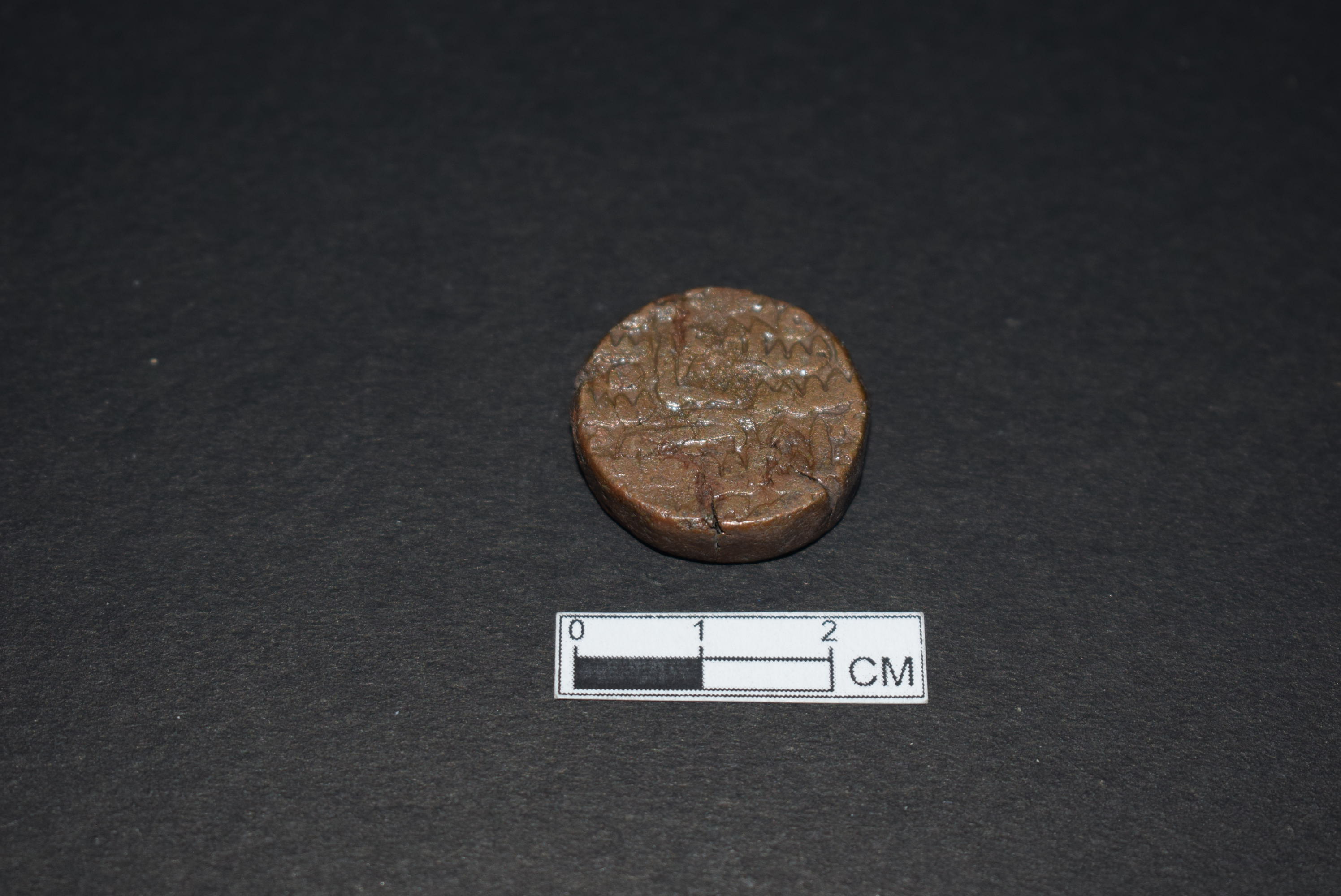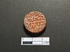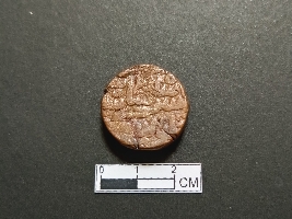 It is a circular coin. It is made of copper. It is inscribed on both sides. It has several cracks on the side. It belongs to Islam Shah of the Sur dynasty.
