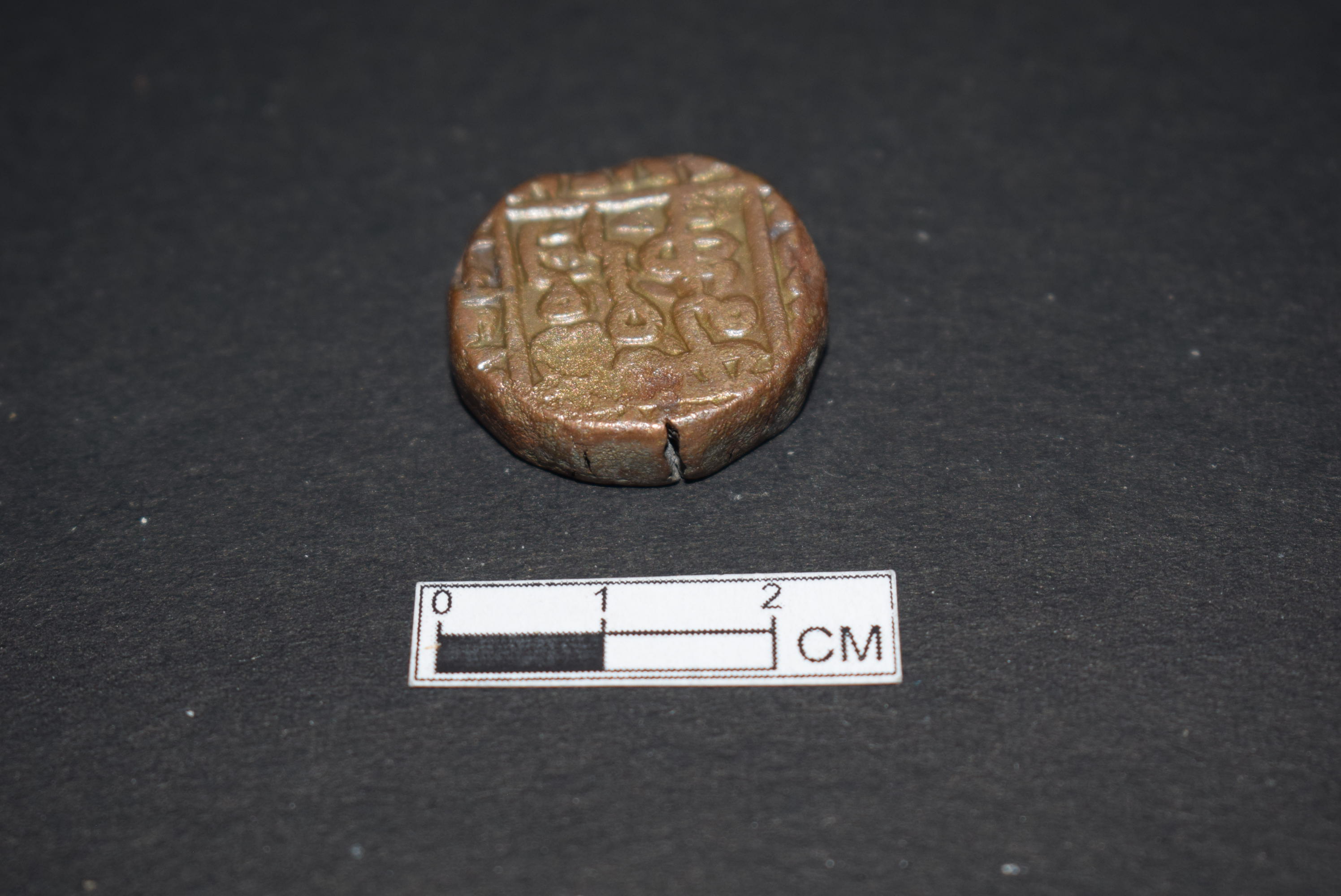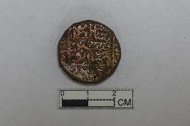 It is a circular coin. It is made of copper. It is inscribed on both sides. Inscribed portion of one side is slightly damaged. It belongs to Sher Shah of the Sur dynasty.