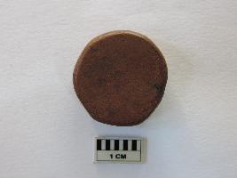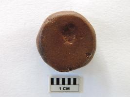 A circular copper coin of the Scindhia dynasty, which is completely weathered. No form of writing is visible on either side of the coin.