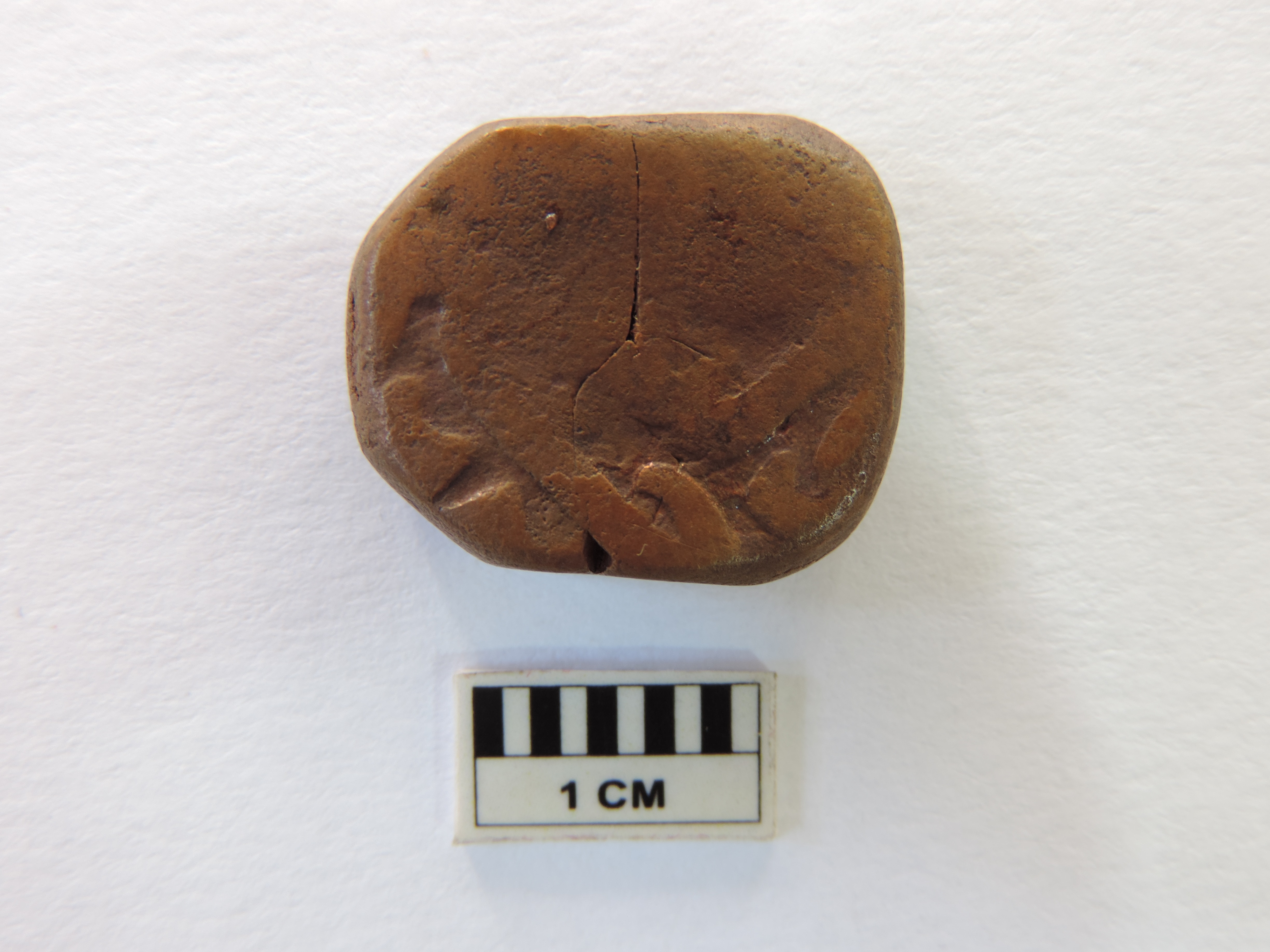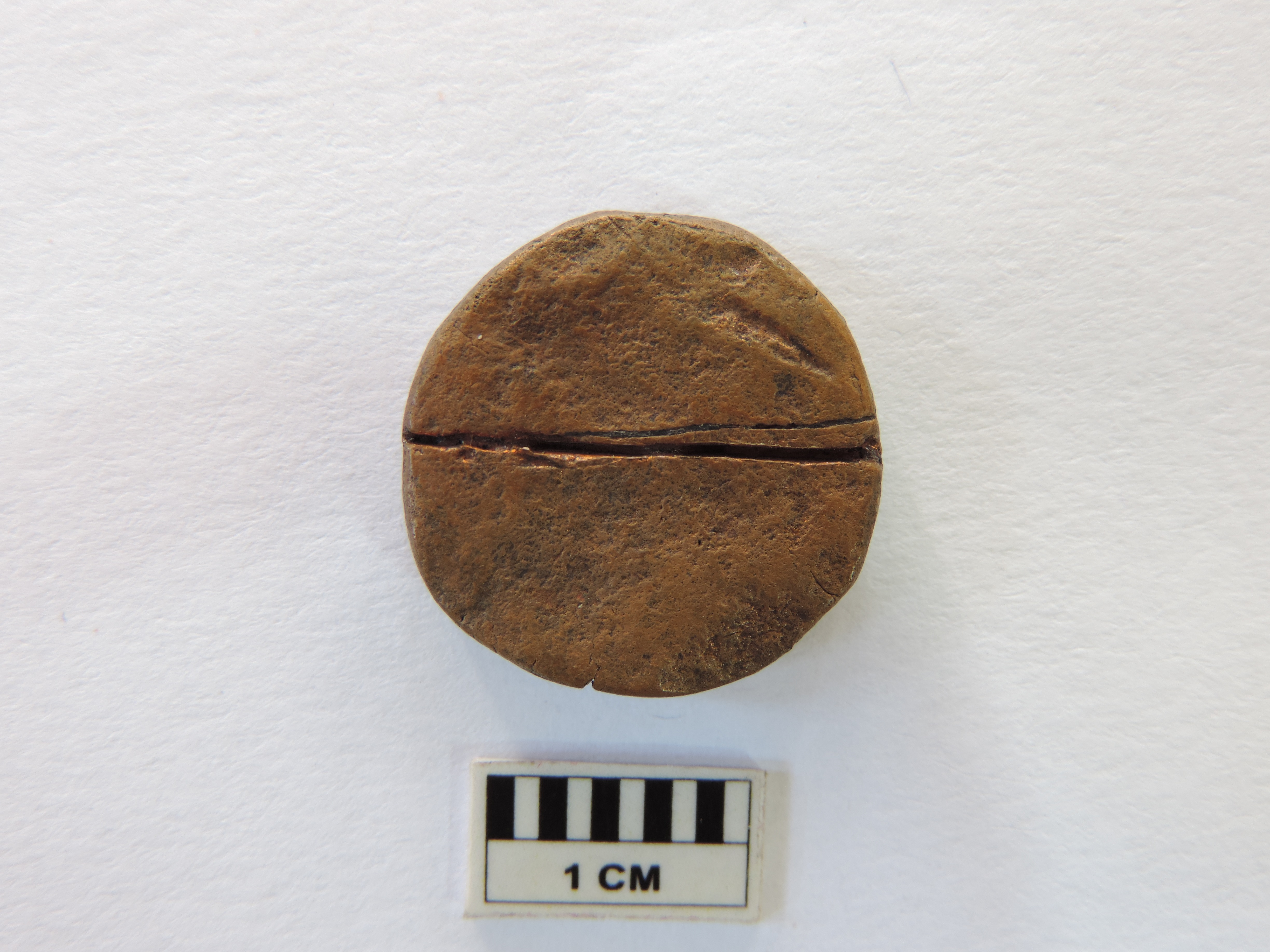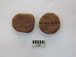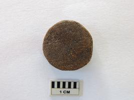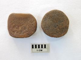Two copper coins of the Scindhia dynasty. The quadrilateral copper coin has something written over it on both sides in Urdu. The circular coin is completely weathered, rendering no visibility of anything written on any side.