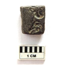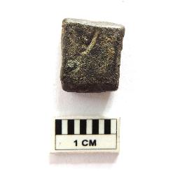 | Description / विवरण | A quadrilateral-shaped Sunga period copper coin. On one side of the coin, two symbols are drawn and on the other side of the coin, a slight groove is visible. |