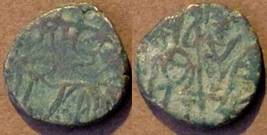 | Description / विवरण | Descrpn./Obv Recumbent bull facing left, wearing jhula (saddle cloth). Above, legend in Sarada script Sri Samantadeva (in cursive letters, mostly truncated and seen partially or off the flan). Descrpn./Rev Rider with lance on caparisoned horse facing right. |