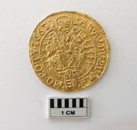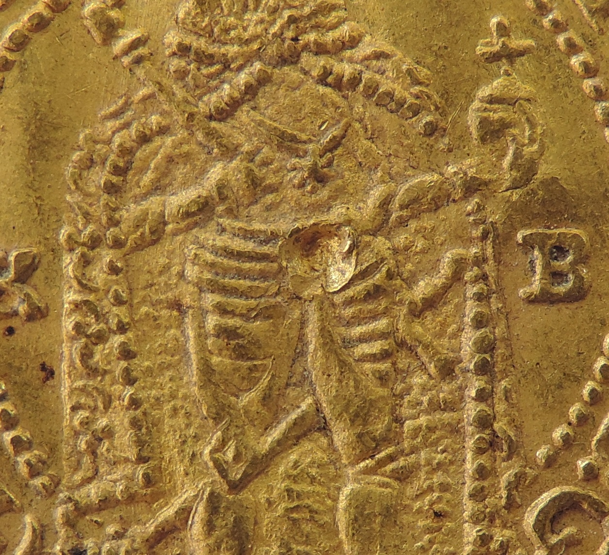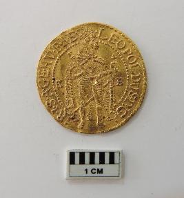 This is a Hungarian Ducat coin of 1663 having a value of 1 Ducat. On the obverse, full-size crowned standing Monarch facing front, looking right with an orb in left hand and sceptre in right divides mintmark, called KB. An inscription around in the outer pearl circle, in Latin- LEOPOLDVS D G R I S A GE HV B RE , meaning, Leopold, by the grace of God Emperor of the Romans, Always August, King of Germany, Hungary, Bohemia. On the reverse, crowned and glorified radiant Madonna is seated on a crescent with a sceptre in her right hand and a child sits on her left arm, with the Hungarian coat of arms at the bottom. An inscription around the outer pearl circle with the date at the end of the inscription in Latin- AR AV DV BV MA MO CO TY 1680 , which translates to Archduke of Austria, Duke of Burgundy, Margrave of Moravia and Count of Tyrol, 1680. The edge is plain.