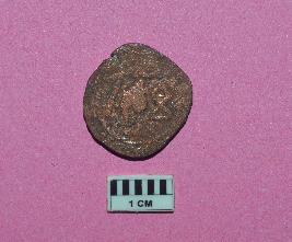 | Description / विवरण | Irregular circular shaped coin. One side contain three symbols such as goad, conch and stylized fish. Another side contains reclining form of Vishnu above the coil of serpent Ananta. |