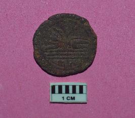 | Description / विवरण | Irregular circular shaped copper coin. One side is depicted with five symbols within a circle - right side has goad, left side has a conch and an elephant in the middle. A vertical stylized fish symbol also depicted above the elephant. Other symbols include sun depicted with dot and moon by a mini crescent mark. The other side have depiction of reclining form of Vishnu above the coil of serpent Ananta. |