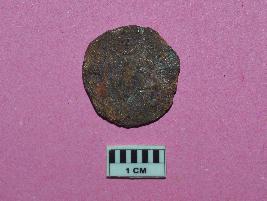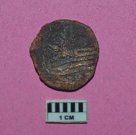 | Description / विवरण | Irregular circular shaped copper coin. One side is depicted with five symbols within a circle - right side has goad, left side has a conch and an elephant in the middle. A vertical stylized fish symbol also depicted above the elephant. Other symbols include sun depicted with dot and moon by a mini crescent mark. The other side have depiction of reclining form of Vishnu above the coil of serpent Ananta |