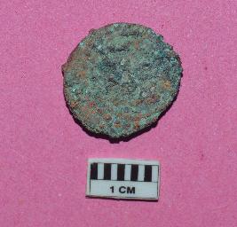| Description / विवरण | Irregular circular shaped coin. One side of the coin contain dot marks above a semicircular line, other symbols are not clear. The opposite side seems to contains reclining form of Vishnu with a tortoise. |