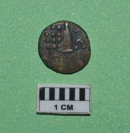 | Description / विवरण | Round shaped silver coin. The coin is Panam of Cochin, Obverse - Shaped line with dots and Reverse - Shaped line with dots. |