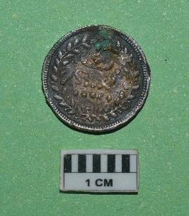 | Description / विवरण | Round shaped silver coin. Cochin Puthan panam. Obverse - Crescent with diamond shape above and two curved lines with ten circular dots. Reverse - R.V. written in center and decorated with flower motifs. |