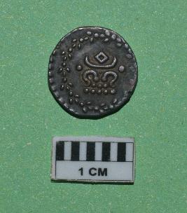 | Description / विवरण | Round shaped coin. Cochin Puthan panam. Obverse - Crescent with diamond above and two curved lines with ten circular dots. Reverse 12 dots above a crescent decorated with flowers. The legend of coin engraved in old Malayalam or Tamil which is in clock wise direction. |