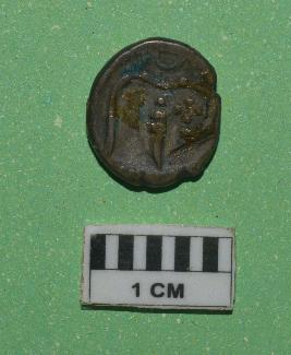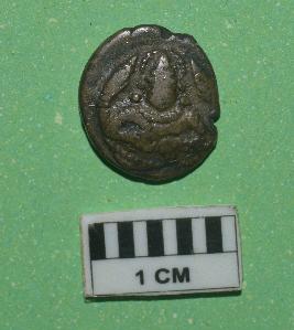 | Description / विवरण | Irregular round shaped coin. Two cash of Travancore. Obverse - Conch Shell. Reverse -Seated a deity. |