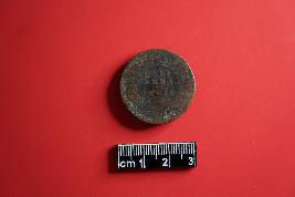 | Description / विवरण | A copper coin, it is circular in shape. Obv. Nothing is traceable due to damage. Rev. Rev. Denomination and date within circle of beads surrounded by wreath.Legend Half ANNA INDIA 1862 |