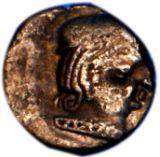 | Description / विवरण | Obverse Portrait bust figure of the king. He is shown with tight necklet, long pointed nose, thick lips, fleshy cheeks. His combed hair is drawn upwards and made into a top bun and hair locks are drawn on the back side of neck with ends curled. The legend on the left side is worn out. Reverse There is a legend below the beaded design reading . |