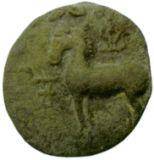 | Description / विवरण | Horse symbol with legend. Obverse Horse with slightly raised ears standing to its right, Srivatsa symbol above and triangle standard in front. The legend is abraded. Reverse Three arched hill with a wavy line below. |