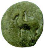 | Description / विवरण | Abraded Horse symbol and legend. Obverse Abraded horse standing to its right with slightly raised ears, Srivatsa symbol above and triangular standard in front. Legend is not clear. Reverse Three arched hill with 4 dots in all three arches and enclosed by a double line square. |