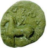 | Description / विवरण | Horse symbol with clear legend. Leg portion of the animal is cut off. Obverse Horse with slightly raised ears standing to its right, Srivatsa symbol above and triangular standard in front. The legend reads ma ha ta la va ra . Reverse Three arched hill but only two arches are visible with 6 dots in the lower arch and 4 dots in the top arch. All are enclosed by a double line square. |