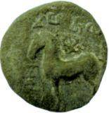 | Description / विवरण | Horse symbol with clear legend. Back leg portion of animal is cut off. Obverse Horse with slightly raised ears standing to its right, Srivatsa symbol above and triangular standard in front. The legend reads ma ha ta la va . Reverse Three arched hill with 4 dots in two lower arches and 3 dots in the top arch and a wavy line below. All are enclosed by a double line square. |