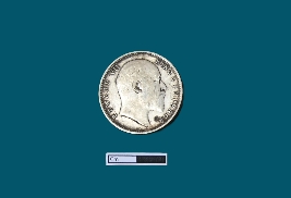 | Description / विवरण | A circular shaped silver coin. Obv. Bust of King Edward VII facing right dividing a legend within a raised and toothed border. Script EDWARD VII KING & EMPEROR. Rev. The value in English and Urdu - Ek rupiya (One rupee) and the year below with a spray of lotus flowers on each side and a crown above, all within a raised toothed border. Script ONE RUPEE INDIA 1904 Black patches are visible. |