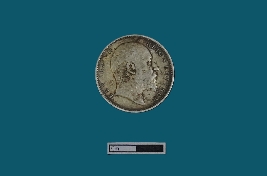 | Description / विवरण | A circular shaped silver coin. Obv. Bust of King Edward VII facing right dividing a legend within a raised and toothed border. Script EDWARD VII KING & EMPEROR. Rev. The value in English and Urdu - Ek rupiya (One rupee) and the year below with a spray of lotus flowers on each side and a crown above, all within a raised toothed border. Script ONE RUPEE INDIA 1905. Black patches are visible. |