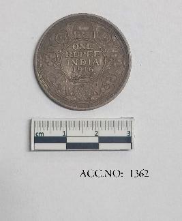 | Description / विवरण | It is a One rupee coin of British India. The obverse of the coin has a bust profile of King Edward VII. The legend of the coin states EDWARD VII KING & EMPEROR. This is encircled within a beaded circle that runs along the rim of the coin. The reverse of the coin has a Latin script that states the denomination of the coin -ONE RUPEE INDIA . Which is followed by the year 1916. Beneath which a Persian script is seen. this enclosed within a wreath foliage decor. A beaded circle decor runs along the rim of the coin. |
