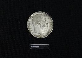 | Description / विवरण | A silver coin with a circular shape. Obv. Bust of King Edward VII facing to the right, dividing a legend within a raised and toothed border. Script EDWARD VII KING & EMPEROR. Red patches are visible. Rev. The coin bears the denomination in both English and Urdu - Ek rupiya (One rupee) along with the year. Surrounding these elements are a spray of lotus flowers on each side and a crown above, all enclosed within a raised, toothed border. Script ONE RUPEE INDIA 1905. |