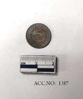 | Description / विवरण | It is a two Anna coin of British India.The obverse of the coin has a bust profile of queen Victoria. The legend of the coin states VICTORIA QUEEN. This is encircled within a beaded circle that runs along the rim of the coin. The reverse of the coin has a Latin script that states the denomination of the coin TWO ANNAS followed by a Persian script. The script is encircled by a olive wreath decor. Beneath the wreath the year of the coin 1841 is seen. The legend of the coin states- EAST INDIA COMPANY. A beaded circle decor runs along the rim of the coin. |