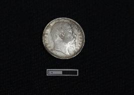| Description / विवरण | A circular shaped silver coin. Obv. Bust of King Edward VII facing right dividing a legend within a raised and toothed border. Script EDWARD VII KING & EMPEROR. Rev. The value in English and Urdu - Ek rupiya (One rupee) and the year below with a spray of lotus flowers on each side and a crown above, all within a raised toothed border. Script ONE RUPEE INDIA 1904. |