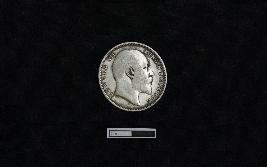 | Description / विवरण | A silver coin with a circular shape. Obv. Bust of King Edward VII facing to the right, dividing a legend within a raised and toothed border. Script EDWARD VII KING & EMPEROR. Rev. The coin bears the denomination in both English and Urdu - Ek rupiya (One rupee) along with the year. Surrounding these elements are a spray of lotus flowers on each side and a crown above, all enclosed within a raised, toothed border. Script ONE RUPEE INDIA 1904. |