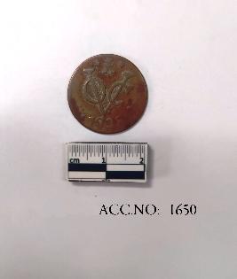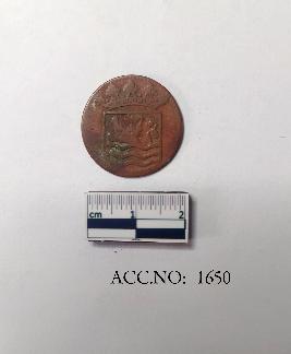 | Description / विवरण | It is a Duit coin of the dutch. The obverse depicts a crowned arms of the dutch while the reverse depicts a VOC monogram- Verenigde Oostindische Compagnie. There is a mint mark above the monogram and the year of the coin 1738 is faintly visible beneath it. A dot flanks both the sides of the year . |