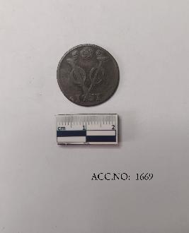 | Description / विवरण | It is a Duit coin of the dutch. The obverse depicts a crowned arms of the dutch while the reverse depicts a VOC monogram-Verenigde Oostindische Compagnie. There is a mint mark above the monogram and the year of the coin 1751 beneath it. A dot flanks both the sides of the year . |