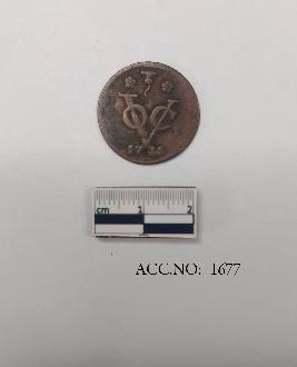 | Description / विवरण | It is a Duit coin of the dutch. The obverse has a depicts a crowned coat of arms of the dutch with two consecutive lions while the reverse depicts a VOC monogram- Verenigde Oostindische Compagnie. There is a mint mark above the monogram and the year of the coin 1735 beneath it. A dot flanks both the sides of the year . |
