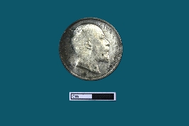 | Description / विवरण | A circular shaped silver coin. Obv. Bust of King Edward VII facing right dividing a legend within a raised and toothed border. Script EDWARD VII KING & EMPEROR. Rev. The value in English and Urdu - Ek rupiya (One rupee) with a spray of lotus flowers on each side and a crown above, all within a raised toothed border. Script ONE RUPEE INDIA 1905. Black patches are visible on both sides. |