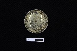 | Description / विवरण | A silver coin with a circular shape . Obv. Bust of King Edward VII facing to the right, dividing a legend within a raised and toothed border. Script EDWARD VII KING & EMPEROR. Red patches are visible. Rev. The coin bears the denomination in both English and Urdu - Ek rupiya (One rupee) along with the year. Surrounding these elements are a spray of lotus flowers on each side and a crown above, all enclosed within a raised, toothed border. Script ONE RUPEE INDIA 1906. Few black patches are visible on both sides. |