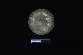| Description / विवरण | A circular shaped silver coin. Obv. Bust of King Edward VII facing right dividing a legend within a raised and toothed border. Script EDWARD VII KING & EMPEROR. Rev. The value in English and Urdu - Ek rupiya (One rupee) with a spray of lotus flowers on each side and a crown above, all within a raised toothed border. Script ONE RUPEE INDIA 1905. |